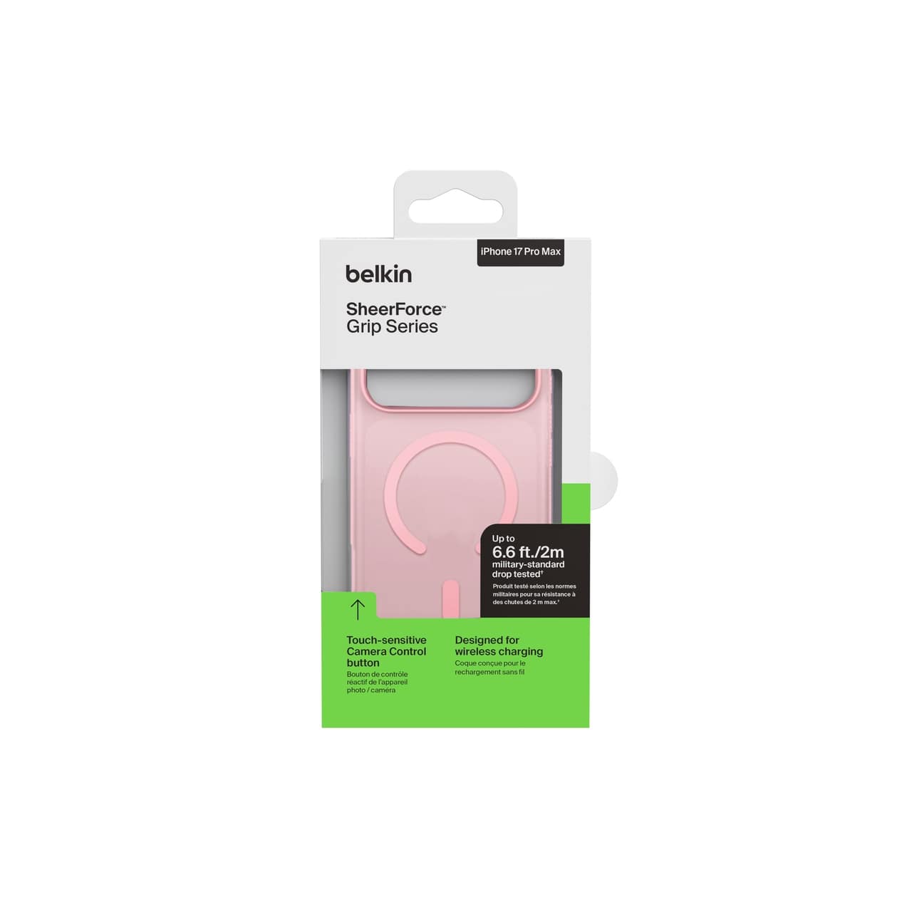Belkin Grip Series для iPhone 17 Pro Max (MSA036HQPK, Pink) — класичний магнітний чохол у кольорі Pink (рожевий) з протиковзною текстурою, захистом від падінь до 2 м і повною сумісністю з MagSafe. Тонкий корпус із TPU (з перероблених матеріалів), вигнуті краї, поліровані кнопки та напівпрозоре покриття з м’яким фінішем. Яскравий, жіночний відтінок для тих, хто любить стиль і надійність.