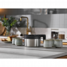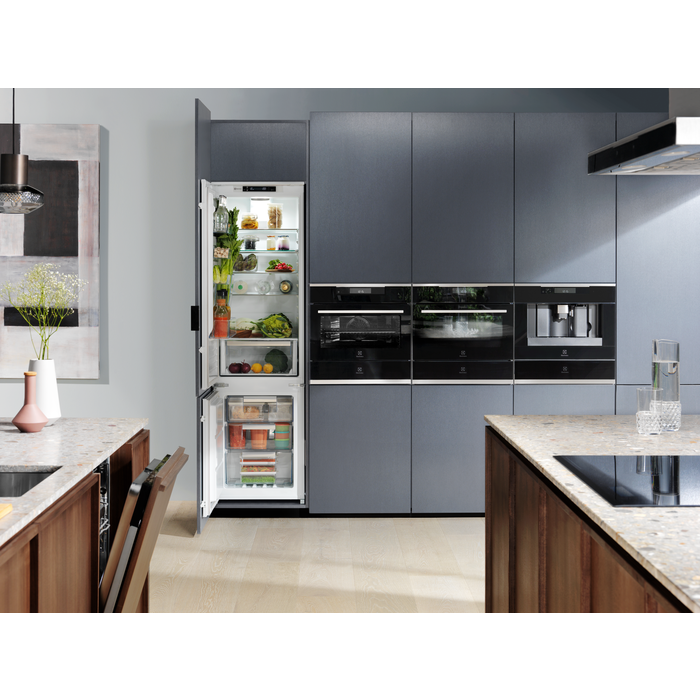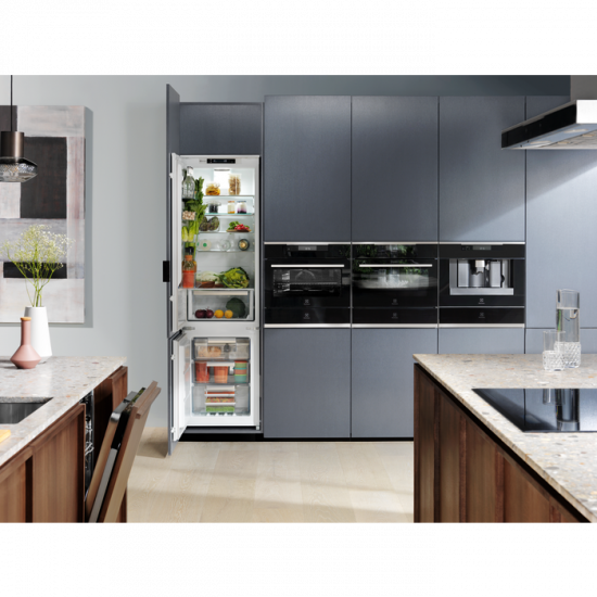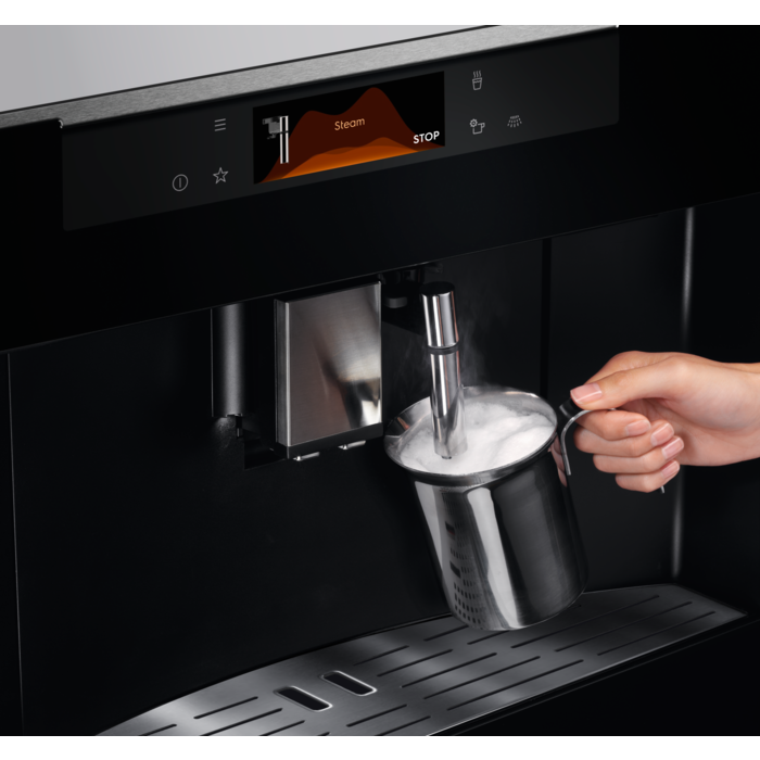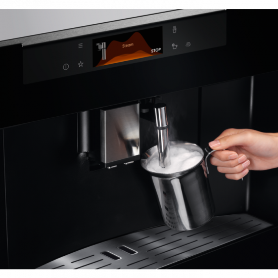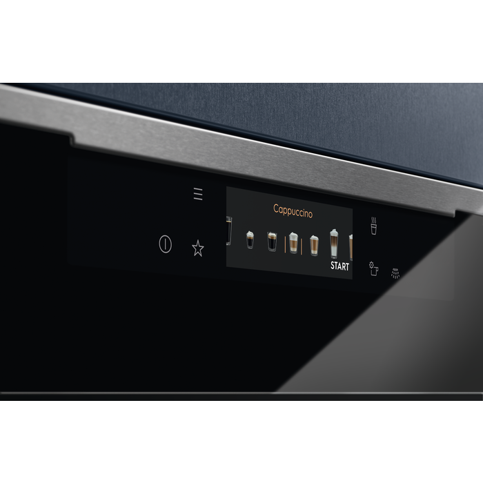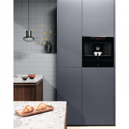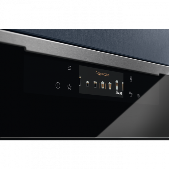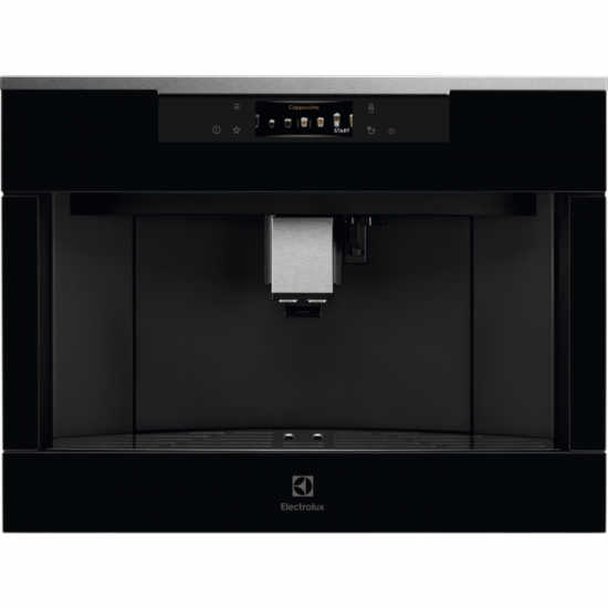 Electrolux KBC85X — вбудована кавомашина преміумкласу з автоматичним приготуванням кавових напоїв. Вона поєднує функціональність, естетику та інноваційні технології. Завдяки двом нагрівальним елементам готує каву та гарячу воду одночасно. Сенсорне керування та підсвітка забезпечують комфортне користування, а молочний термокухоль підтримує ідеальну температуру для створення ніжної пінки. Підходить для зернової та меленої кави, має функцію автоматичного запуску, індикатори рівня води, зерен і відходів.