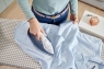 Тефлонова підошва з антипригарним покриттям ковзає по тканині, даючи змогу швидко та легко попрасувати речі в дорогу. Вам гарантоване плавніше й ефективніше прасування. Функція парового удару усуває зминання та розгладжує складки.