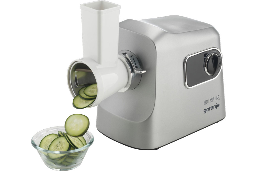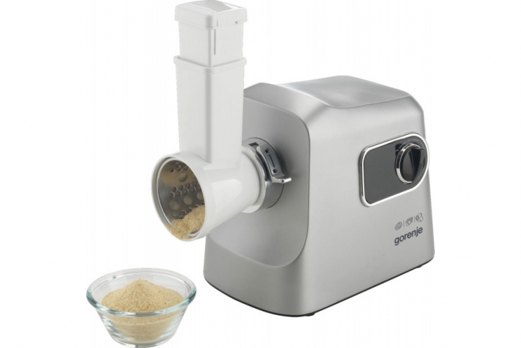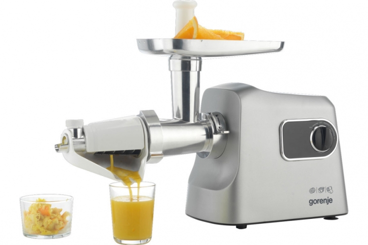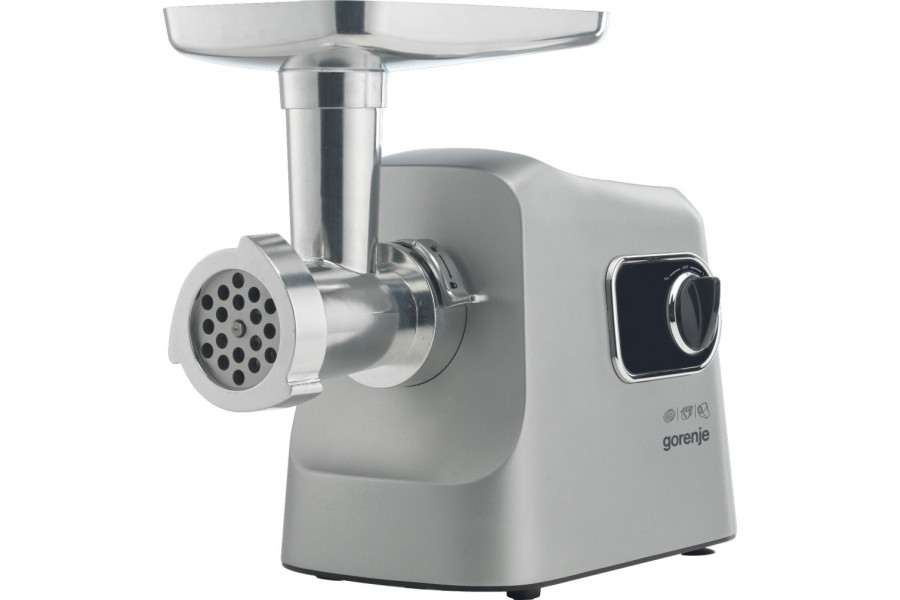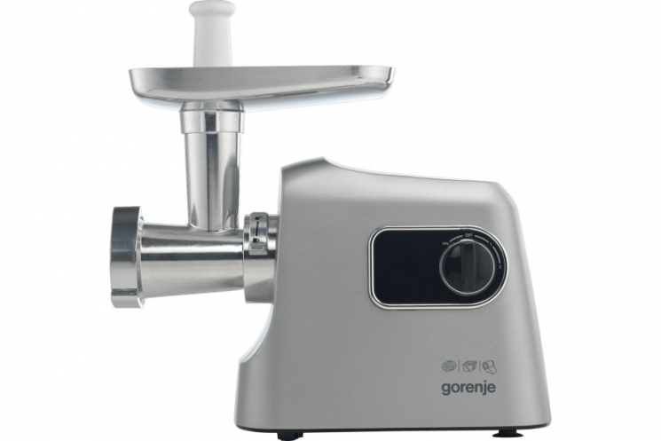 Опис М'ясорубка Gorenje, 2500Вт, 2.8кг/хв, 3 решітки, насадка для ковбас, кеббе, шнековий соковидавлювач, 3 терки, пластик/метал, нерж