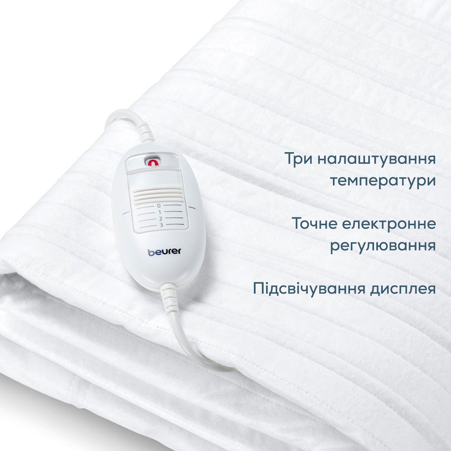 Пристрій споживає лише 60 Вт — оптимально для тривалого безпечного використання вночі. Beurer TS 17 поєднує комфорт, безпеку та простоту догляду, що робить його надійним рішенням для холодного сезону.