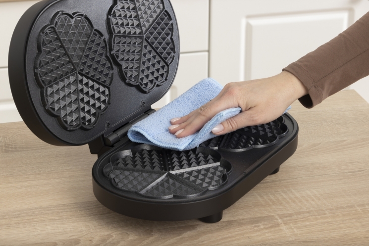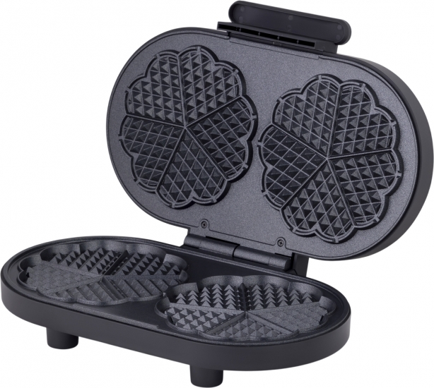 Має індикатор температури, регулятор нагріву та стандартний трубчастий нагрівач для рівномірного випікання. Форма для вафель зафіксована, що забезпечує стабільність під час приготування. Холодні ручки та нековзкі ніжки підвищують безпеку. Є відділення для зберігання шнура.