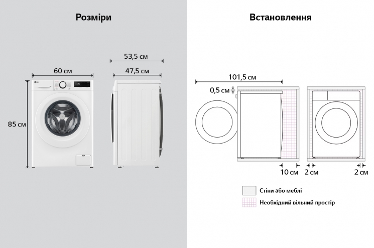 | Глибина | 47.5 см (53.5 см — із зачиненими дверцятами; 101.5 см — із відчиненими дверцятами) |