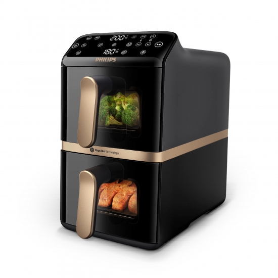 Мультипіч Philips Stacked Dual 2300Вт, чаша-5+5л, сенсорне управл., 6 авто. программ, пластик, чорний