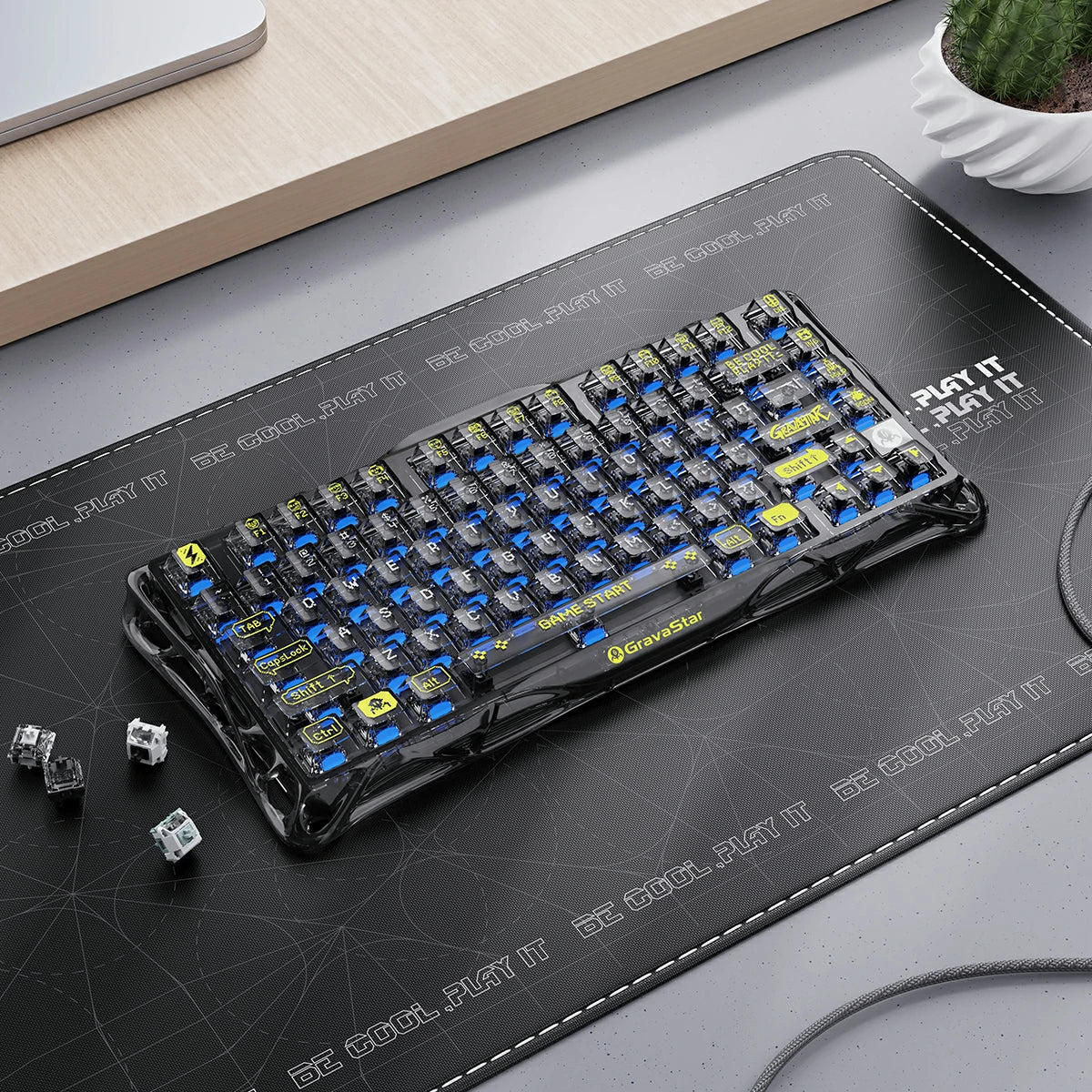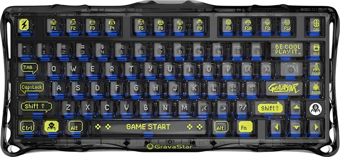 Опис Клавіатура механічна GravaStar Mercury K1 Lite 80keys, GravaStar x BSUN Grey, BT/WL/USB, Transparent Black