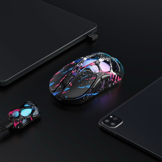GravaStar Mercury X Pro Neon Graffiti поєднує індустріальний дизайн і технологічну довершеність. Корпус із магнієвого сплаву має товщину лише 0.03 дюйма, забезпечуючи неймовірну легкість без втрати міцності. Завдяки сенсору PAW3950 із роздільною здатністю 32 000 DPI миша реагує на найменші рухи, а RGB-підсвічування додає індивідуального стилю. Трирежимне підключення гарантує стабільну роботу як через USB-A, так і бездротово.