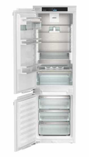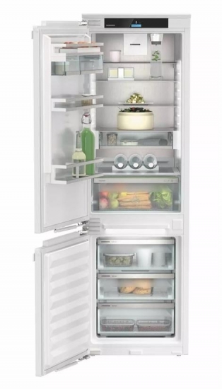 Liebherr SICNDI 5153 — це вбудований двокамерний холодильник, створений для комфортного використання й збереження свіжості продуктів. Завдяки динамічній системі охолодження температура рівномірно розподіляється у всіх зонах, а LED-підсвітка забезпечує зручний огляд навіть у темряві. Функції SuperCool і SuperFrost дозволяють швидко охолоджувати або заморожувати великі обсяги продуктів, тоді як SoftSystem гарантує плавне закриття дверцят. Інтелектуальна технологія SmartDevice дає змогу контролювати роботу холодильника дистанційно.