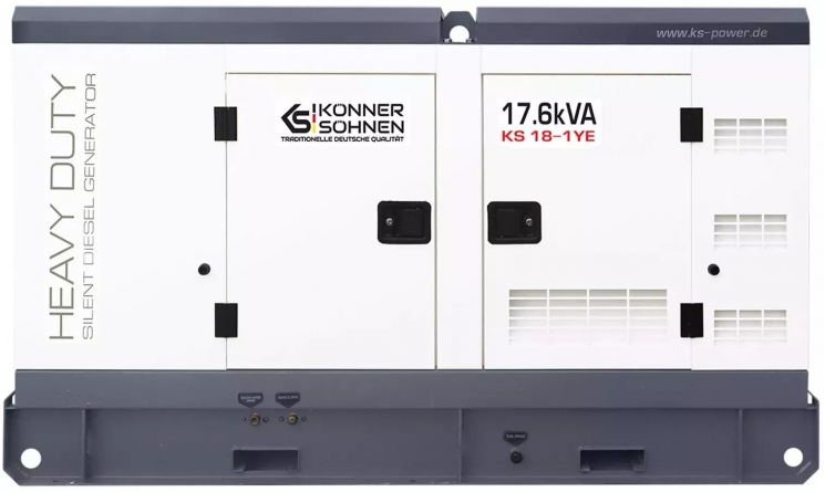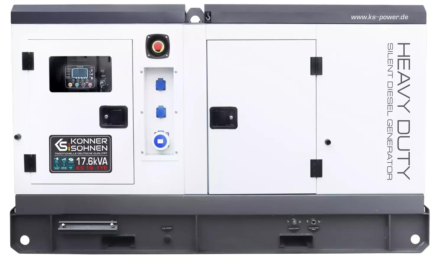 Дизельний генератор Konner&Sohnen KS 18-1YE належить до серії HEAVY DUTY та поєднує потужність, стабільність і тривалий ресурс. 4-циліндровий двигун YangDong з рідинним охолодженням забезпечує впевнену роботу навіть у складних умовах. Шумозахисний та антивандальний корпус захищає обладнання від опадів, вологи та механічних впливів. Цифровий контролер Datakom D300 проводить моніторинг основних параметрів, контролює оберти, подачу палива, рівень оливи та сигналізує про сервісні потреби. Завдяки великому баку та економічному споживанню палива станція може працювати довго без зупинки.