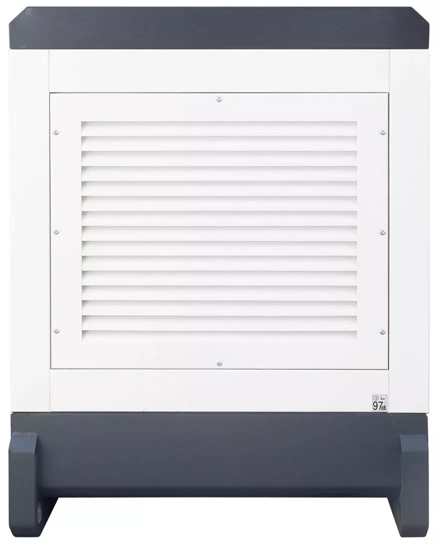 Високоякісний шумозахисний корпус забезпечує суттєве зниження шуму під час роботи установки, має покращений терморозподіл, захищає електростанцію від вологи та конденсату, від несприятливих погодних умов та несанкціонованого втручання. Порошкове антикорозійне покриття продовжує термін експлуатації агрегату. Крім того низько обертові двигуни зі зменшеним рівнем вібрації, закріплені на антивібраційних подушках, що також сприяють більш тихій роботі та зменшенню навантаження на фундамент. Електростанція має кнопку аварійної зупинки STOP для швидкого вимкнення двигуна у разі надзвичайної ситуації.