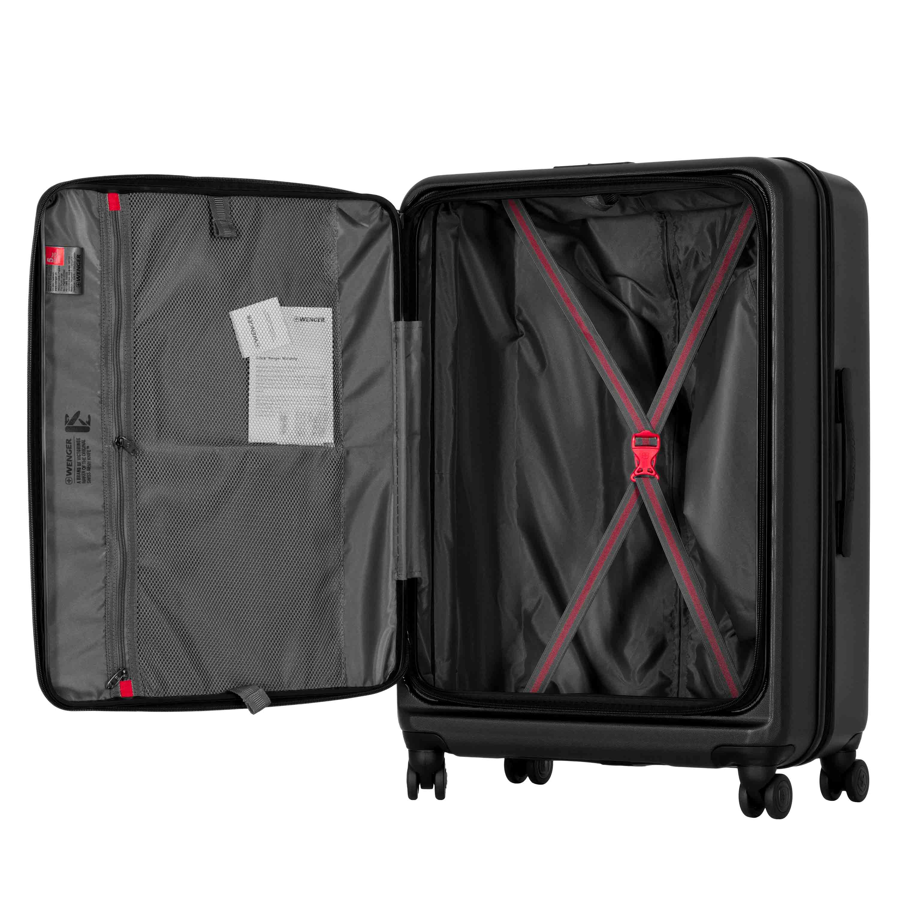 Корпус валізи виготовлений зі 100% полікарбонату, що формує стійкість конструкції під час подорожей. Фронтальне завантаження забезпечує легкий доступ до речей без потреби відкривати основне відділення повністю. Кодовий замок Travel Sentry® Approved створює безпечне зберігання вмісту в дорозі. Подвійна застібка додає додатковий рівень захищеності та підтримує надійну фіксацію. Функція розширення дозволяє збільшити внутрішній простір на 17 літрів для додаткового багажу. Внутрішні компресійні ремені утримують речі у впорядкованому стані.