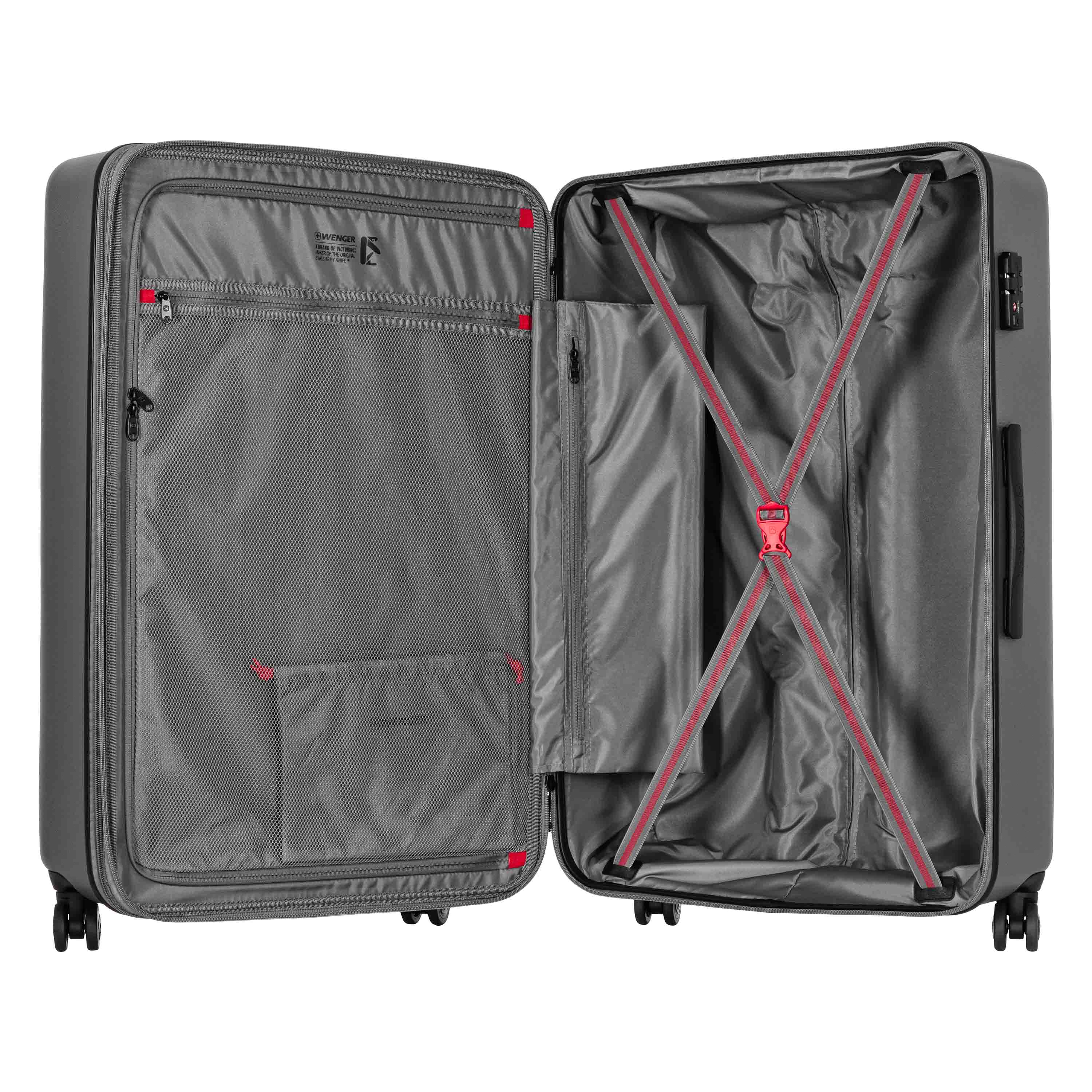 Корпус із пластикового матеріалу формує стійкість під час активних поїздок. Легке пакування забезпечується оптимально організованим внутрішнім простором. Система з чотирма колесами підтримує стабільне пересування на різних покриттях. Ручка зручно регулюється та допомагає утримувати валізу під контролем. Конструкція орієнтована на тривале використання та комфорт у дорозі. Сіре виконання створює універсальний зовнішній характер виробу.