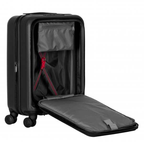 Корпус з 100% полікарбонату забезпечує стійкість під час активних поїздок. Фронтальна панель має окремий відсік для ноутбуків 16" і планшетів 12", що створює зручну організацію та швидкий доступ до техніки. Внутрішній органайзер формує впорядковане розміщення дрібних предметів. Подвійна захисна застібка разом із блокуванням Travel Sentry® Approved утворюють надійну конструкцію безпеки. Вбудований USB-порт дозволяє заряджати пристрої через під’єднаний усередині павербанк. Функція розширення збільшує об’єм валізи на 10 літрів.