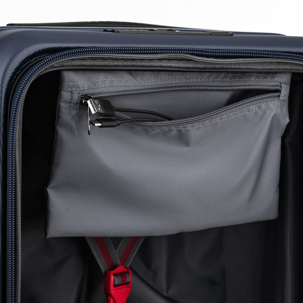 Корпуси валіз виготовлені зі 100% полікарбонату, що підтримує стійкість під час активних переміщень. Фронтальний доступ допомагає упорядкувати речі та створює швидкий підхід до потрібних предметів. Подвійна захисна застібка Anti-Theft разом з блокуванням Travel Sentry® Approved утворюють надійну систему безпеки. Вбудований ідентифікаційний лоток спрощує визначення власника у разі втрати багажу. Телескопічна ручка фіксується на кількох рівнях та адаптується до різної висоти. Система розширення збільшує доступний внутрішній простір кожної валізи, що полегшує пакування.