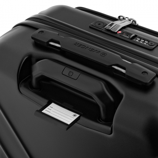 Wenger Amplix — практичні валізи з подвійним захистом, фронтальним доступом і компресійними ременями для надійного пакування. Вбудований лоток для зазначення імені та адреси допомагає легко ідентифікувати багаж у разі втрати. Верхня ручка посилена міцними тросами для більшої витривалості. Телескопічна ручка регулюється під зріст, а чотири здвоєні колеса забезпечують плавний та тихий рух. Кожна валіза має окреме маркування та бірку для поштучного використання.