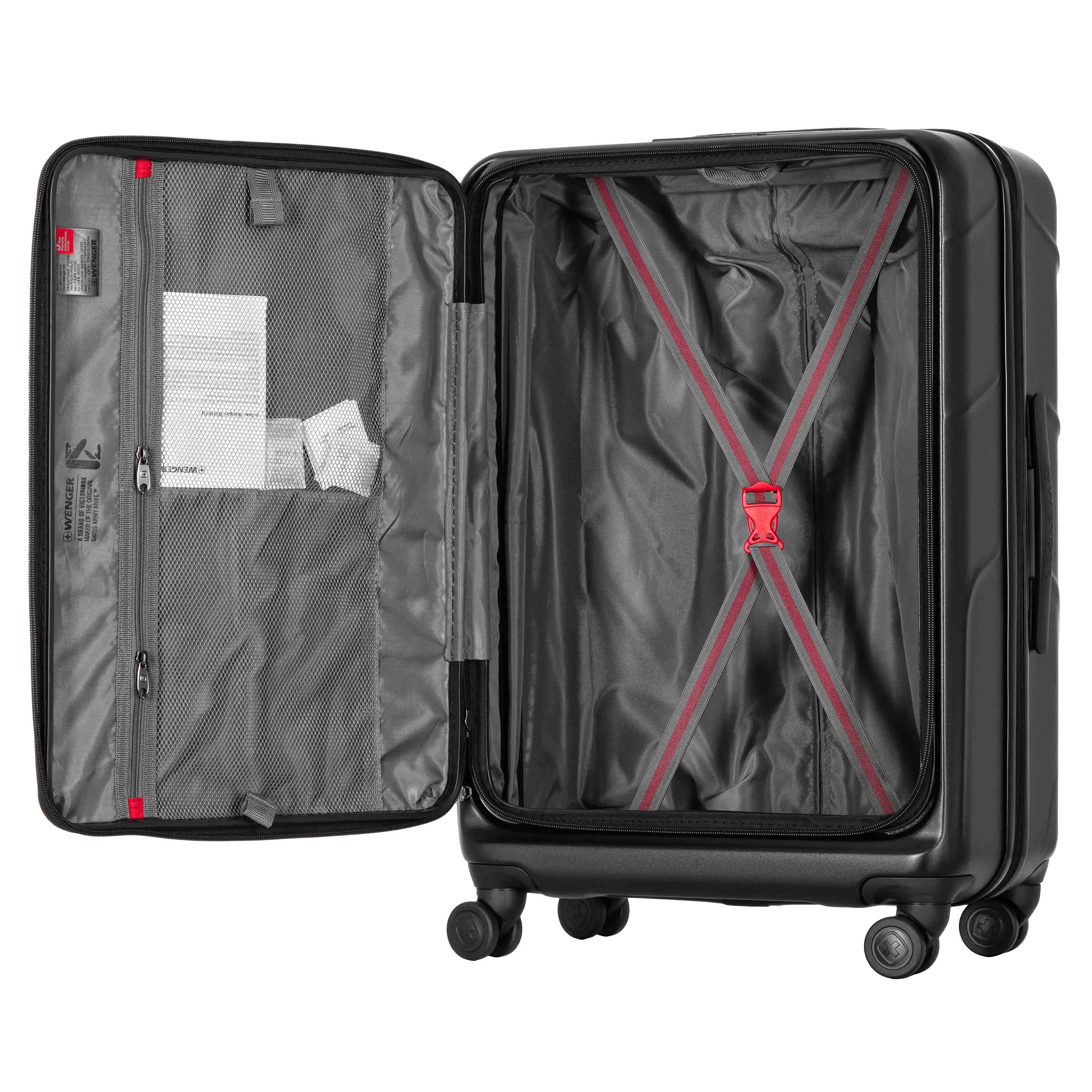 Wenger Amplix Medium — практична валіза з подвійним захистом, фронтальним доступом і компресійними ременями для надійного пакування. Вбудований лоток для зазначення імені та адреси дозволяє легко ідентифікувати багаж у разі втрати. Верхня ручка посилена міцними тросами для більшої витривалості. Телескопічна ручка регулюється під зріст, а чотири здвоєні колеса забезпечують плавний та тихий рух. Внутрішні сітчасті кишені допомагають організувати речі.