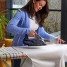 Russell Hobbs Powersteam Ultra Pro — парова праска з високою потужністю 3100 Вт, розроблена для регулярного домашнього прасування різних типів тканин. Кварцово-керамічна підошва забезпечує більш плавне ковзання по тканині та зносостійку робочу поверхню. Завдяки рівномірному розподілу тепла та пари праска стабільно працює як у стандартних режимах, так і при використанні парового удару.