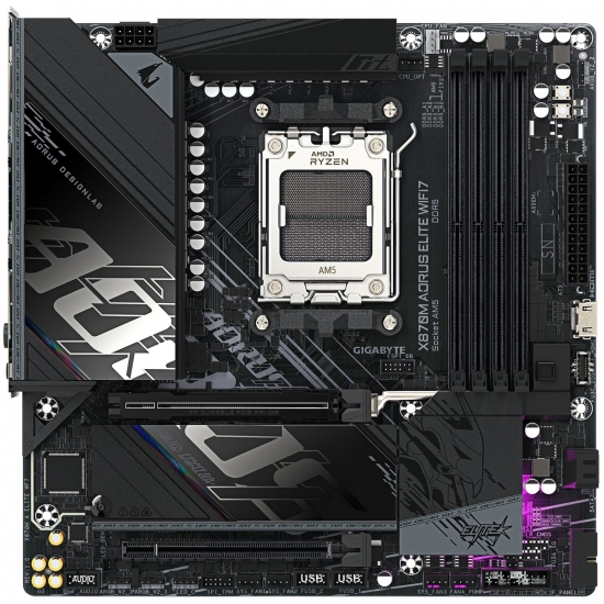 Материнська плата GIGABYTE X870M A ELITE WF7 sAM5 X870 4xDDR5 M.2 Wi-Fi BT HDMI DP mATX