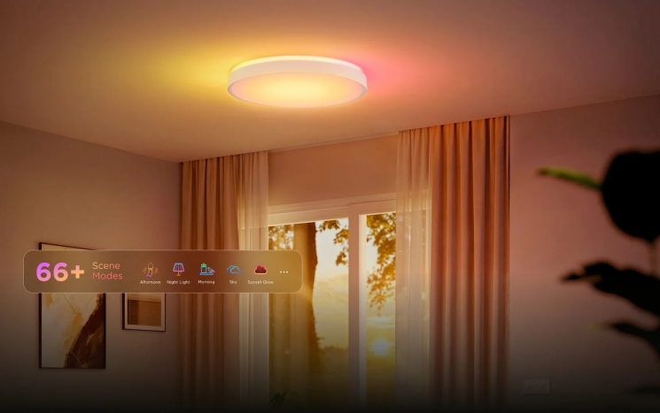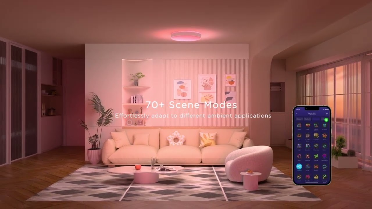 Govee Smart Ceiling Light Pro – це сучасний стельовий світильник із технологією RGBICWW, що дозволяє створювати яскраві багатошарові світлові ефекти для будь-якого настрою. Його площинне підсвічування з 121 сегмента забезпечує плавні переходи та багату кольорову гаму. Світильник вирізняється високою яскравістю 4300 лм, підтримує голосове керування та налаштування через застосунок. Підходить для різних приміщень і легко монтується всього за кілька кроків.