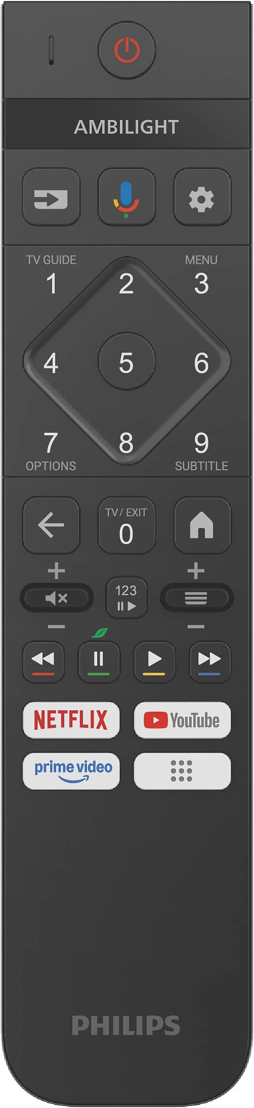 Телевізор Philips 65OLED820/12 — 65-дюймовий OLED-модель чорного кольору з роздільною здатністю 4K UHD 3840×2160 та частотою оновлення 144 Гц для динамічних сцен. Технологія Ambilight з трьома сторонами створює розширене освітлення, що синхронізується з екраном. Smart Google TV забезпечує доступ до Netflix, YouTube, Disney+ та інших додатків, з підтримкою голосового керування через Google Assistant та Alexa. Аудіосистема 4.1 потужністю 70 Вт з Dolby Atmos та субвуфером передає об'ємний звук. Процесор P5 AI Perfect Picture Engine оптимізує зображення з HDR10+, Dolby Vision та VRR для ігор.