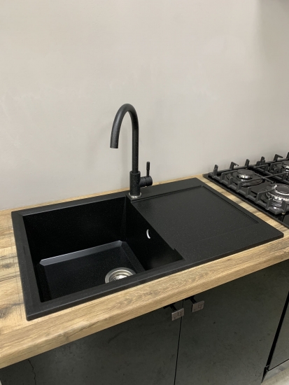 Опис Мийка кухонна Adamant Horizon, штучний камінь, прямокут., з крилом, 780х495х230мм, чаша - 1, врізна, чорний