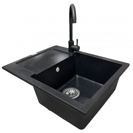 Опис Мийка кухонна Adamant Minimal, штучний камінь, прямокут., з крилом, 615х495х200мм, чаша - 1, врізна, чорний
