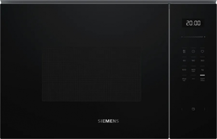 Опис Мікрохвильова піч Siemens вбудована, 25л, електр. керув., 900Вт, гриль, дисплей, чорний