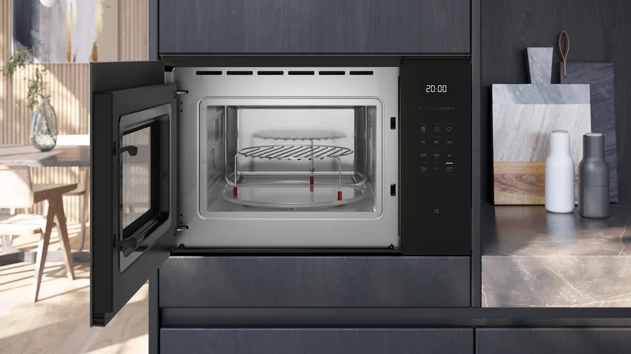 Для кого Ідеальний вибір для сучасних кухонь преміум-класу з вбудованою технікою Siemens/Bosch, особливо коли потрібна мікрохвильова піч з грилем у високій колонці (разом з духовкою 45 або 60 см). Чорний дизайн зі склом чудово виглядає в мінімалістичних інтер’єрах, а сенсорне керування та автопрограми роблять щоденне використання максимально комфортним.