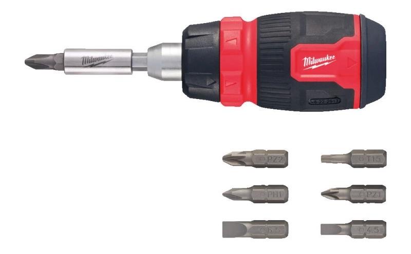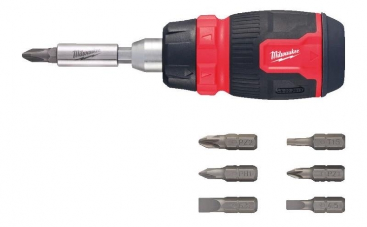 Викрутка Milwaukee з комплектом із 8 насадок створена для виконання широкого спектра монтажних завдань. У наборі є біти PH, PZ, Torx та SL, що дозволяє працювати з різними типами гвинтів і механічних з’єднань. Насадки виготовлені з міцної інструментальної сталі, що забезпечує тривалий термін служби.