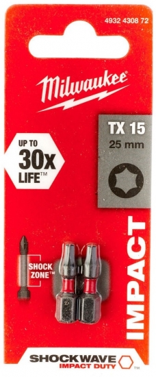 Milwaukee Shockwave TX15 × 25 мм (4932430872) — професійний набір із 2 ударостійких біт розміру TX15 для точних та дрібних робіт.