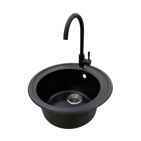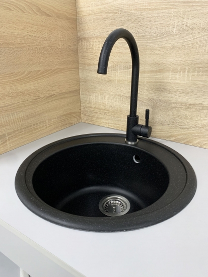 Опис Мийка кухонна Adamant Sun, штучний камінь, кругла, без крила, 510x200мм, чаша - 1, врізна, чорний