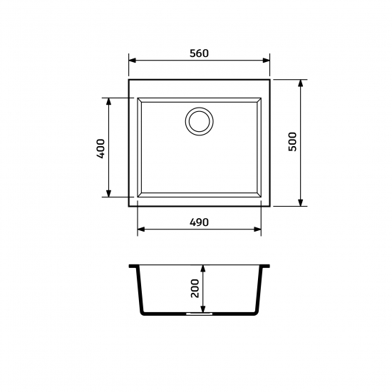 Опис Мийка кухонна Adamant Univer, штучний камінь, квадрат, без крила, 560х500х200мм, чаша - 1, врізна, Old stone