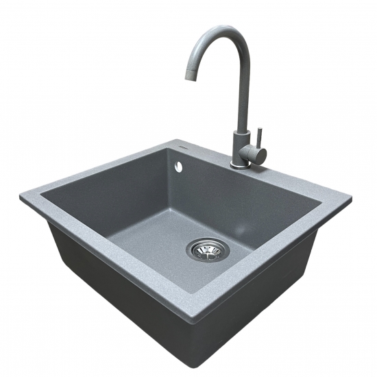 Опис Мийка кухонна Adamant Univer, штучний камінь, квадрат, без крила, 560х500х200мм, чаша - 1, врізна, сірий