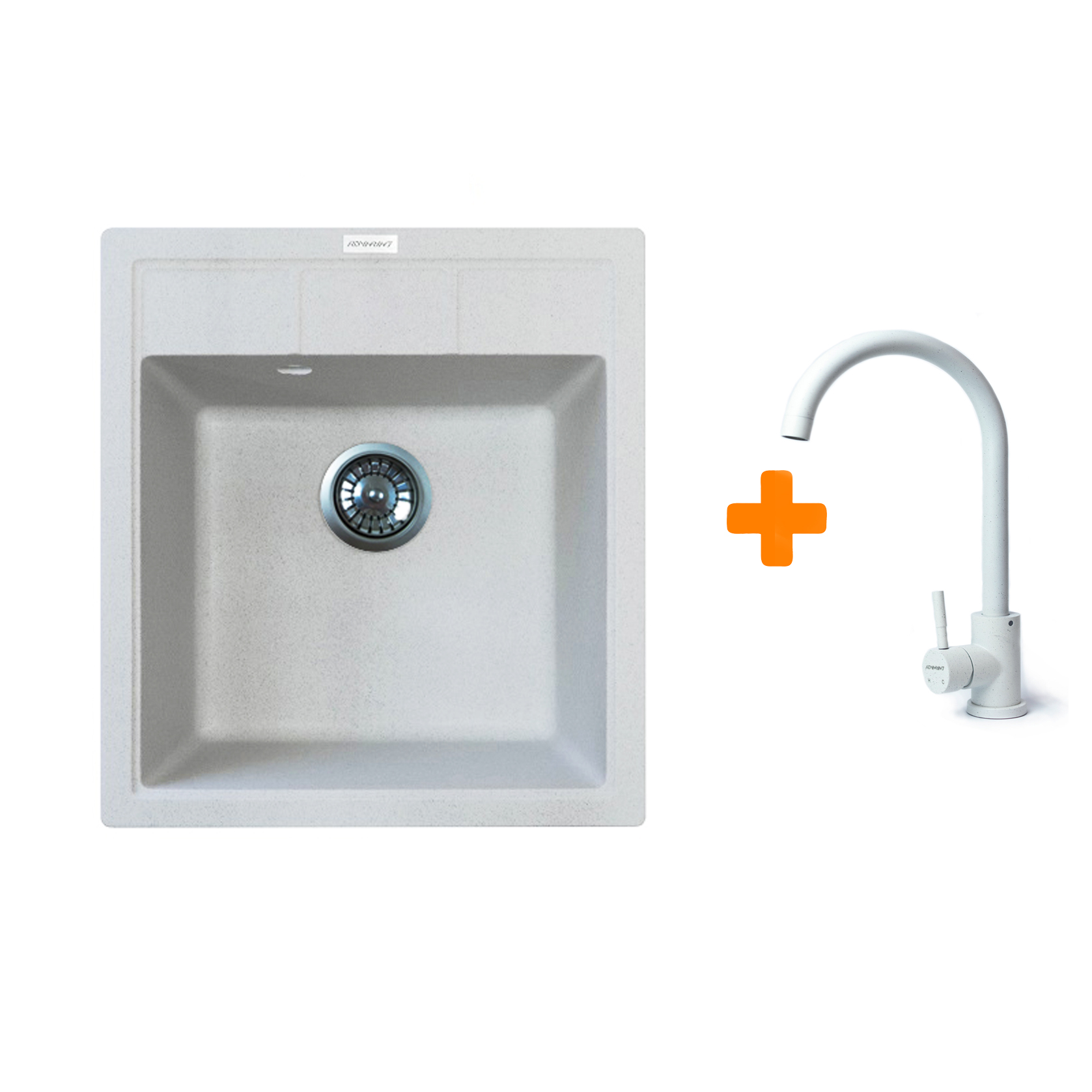 Набір Adamant Brick створений для тих, хто хоче отримати готове комплексне рішення для кухні. Мийка зі штучного каменю має глибоку та зручну чашу, що підходить для щоденної роботи та витримує значні навантаження. Непориста структура поверхні дозволяє підтримувати чистоту та не вбирає запахів чи барвників. Змішувач із харчової нержавіючої сталі має плавний хід важеля, та поворот на 360°. Разом ці елементи формують зручний і довговічний кухонний комплект.
