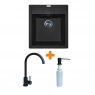 Опис Набір кухонна Adamant Brick, штучний камінь, квадрат, без крила, 460x515x200мм, чаша - 1, врізна, чорний + змішувач та дозатор