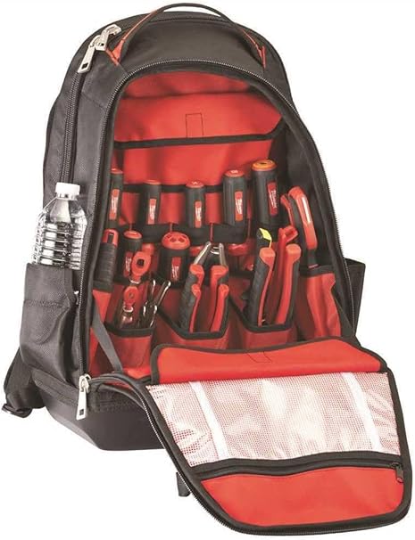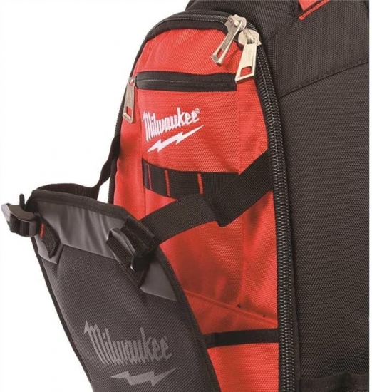 Рюкзак для інструменту Milwaukee створений для майстрів, які потребують надійного та місткого способу перенесення інструментів. Модель має 35 кишень різного розміру, що дозволяє зручно організувати ручний інструмент, витратні матеріали та приладдя. Виготовлений зі зносостійкого нейлону, рюкзак забезпечує захист від пошкоджень у важких робочих умовах. Жорстке пластикове дно запобігає протиранню та захищає вміст від вологи.