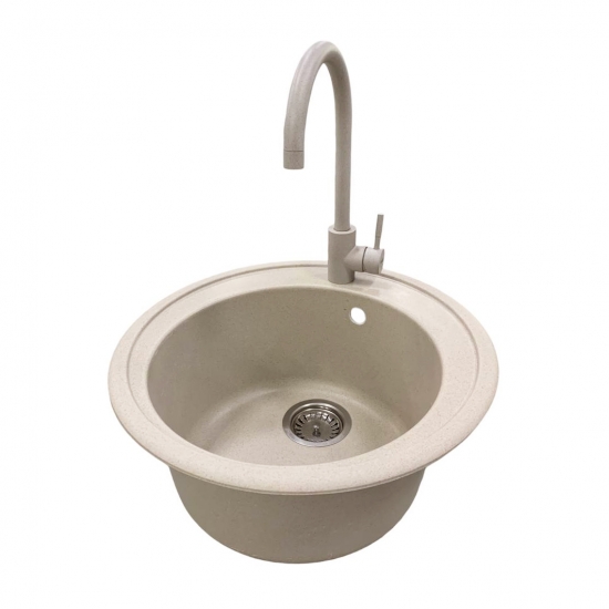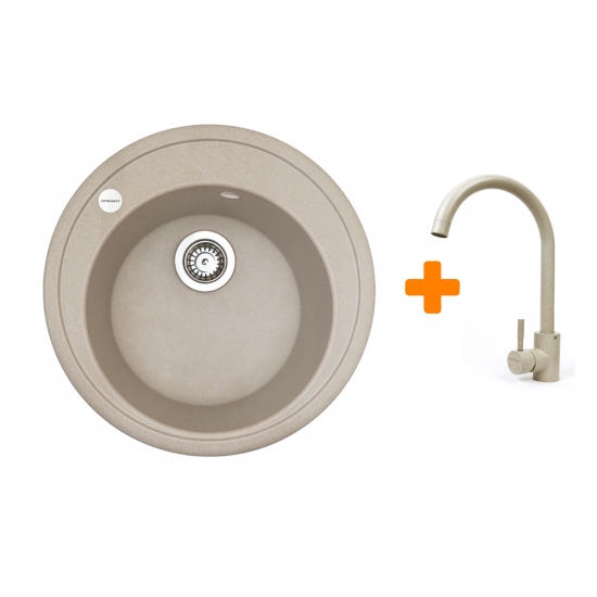 Опис Набір кухонна Adamant Sun, штучний камінь, кругла, без крила, 510x200мм, чаша - 1, врізна, Avena + змішувач