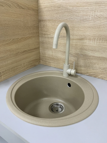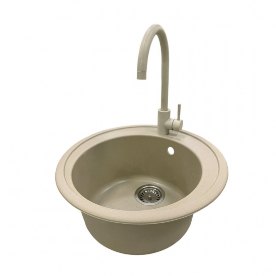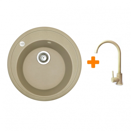 Опис Набір кухонна Adamant Sun, штучний камінь, кругла, без крила, 510x200мм, чаша - 1, врізна, Сахара + змішувач