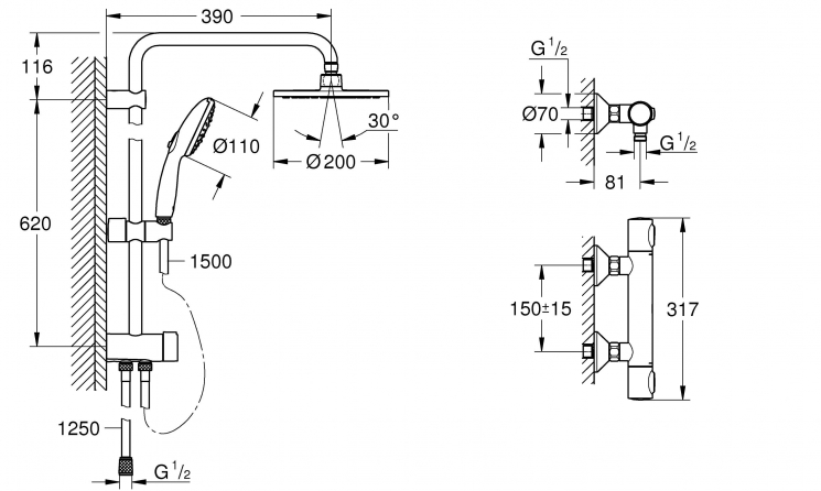- Для тих, хто хоче встановити повноцінний душовий комплект із термостатом без додаткового підбору окремих елементів