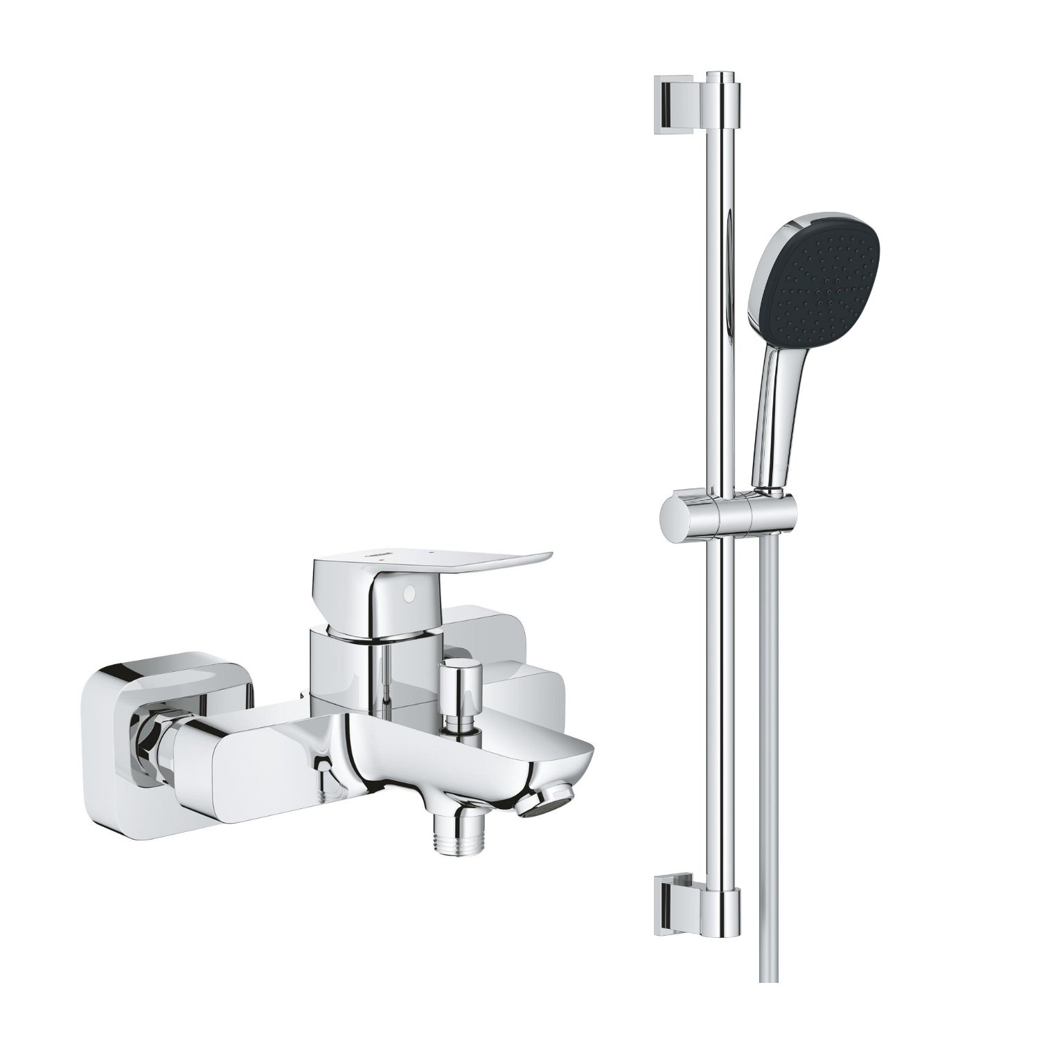 Комплект для ванни GROHE QuickFix Dice & Vitalio Comfort поєднує змішувач у сучасному кубічному стилі та функціональний душовий гарнітур із трьома режимами струменя. Модель оснащена технологіями GROHE SilkMove, GROHE DreamSpray, GROHE SmartSwitch, GROHE SpeedClean та GROHE LongLife, забезпечує комфортну температуру, плавне регулювання води й надійну роботу. Рішення для сучасної ванної кімнати.