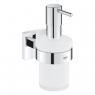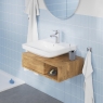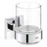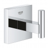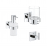 Комплект аксесуарів для раковини GROHE Start Cube містить гачок для халату, склянку з настінним тримачем та дозатор для рідкого мила. Усі елементи виконані у стриманому кубічному дизайні, мають приховане кріплення та довговічне покриття GROHE Long-Life Finish. Підтримують монтаж на шурупи або на клей GROHE QuickGlue A1 і витримують статичне навантаження до 5 кг.