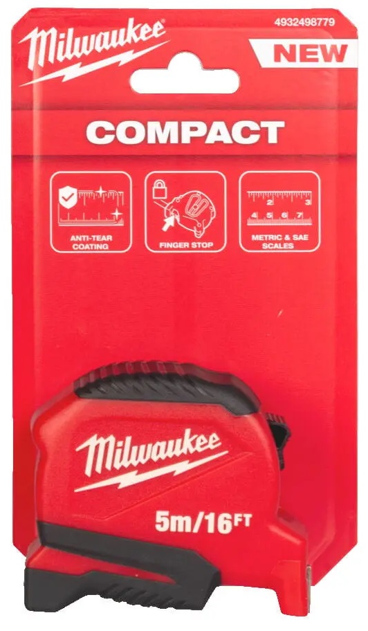 Рулетка Milwaukee Pro Compact 5 м × 25 мм з фіксатором (4932498779) — компактна професійна рулетка для щоденної роботи на будмайданчику з комбінованою шкалою та посиленим захистом.