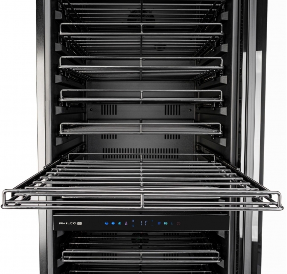 Холодильник Philco для вина,176x60x68, холод.відд.-418л, зон - 2, бут-131, диспл, підсвітка, чорний