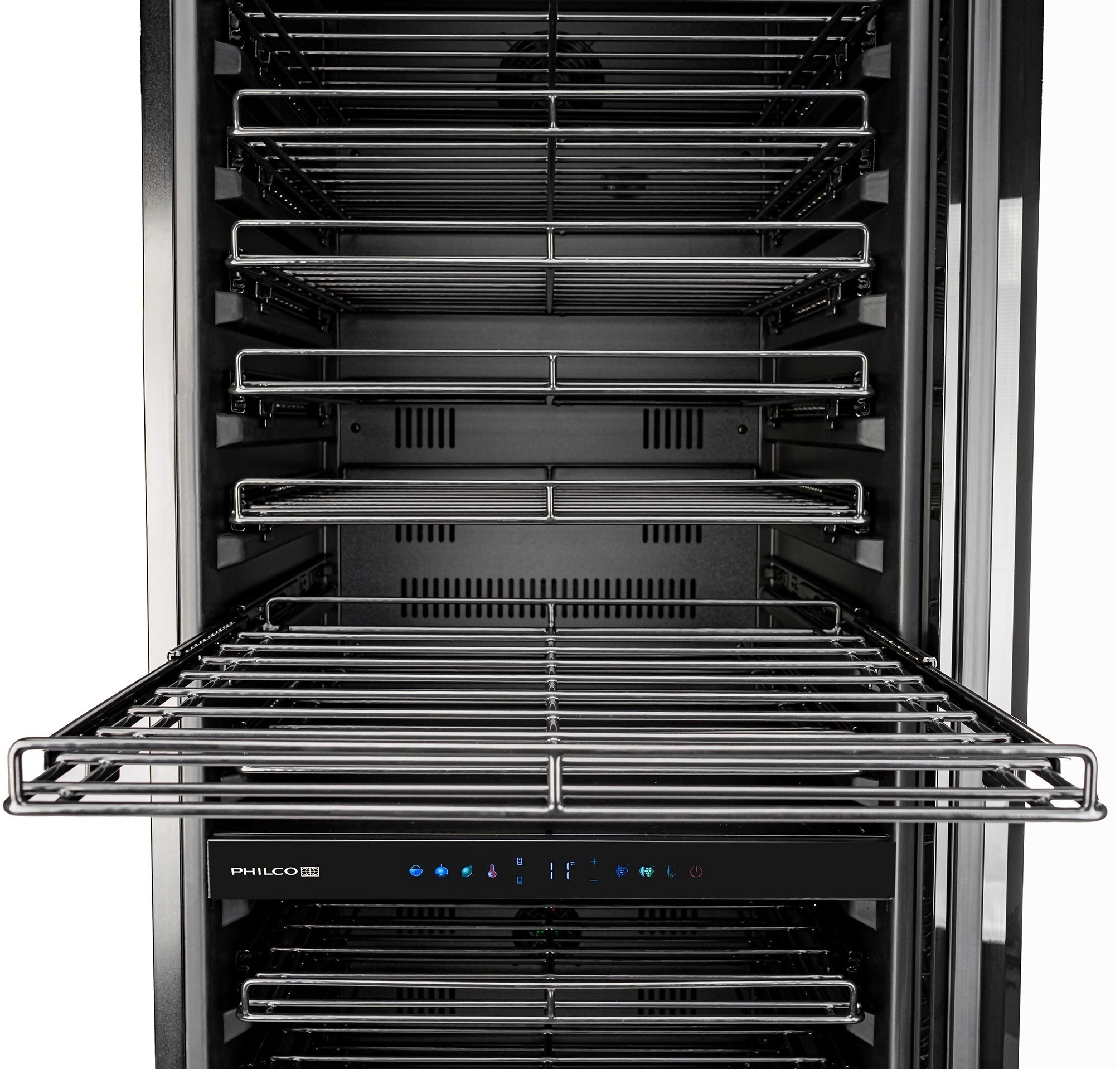Холодильник Philco для вина, 176x60x68, холод.отд.-418л, зон - 2, бут-131, диспл, подсветка, черный