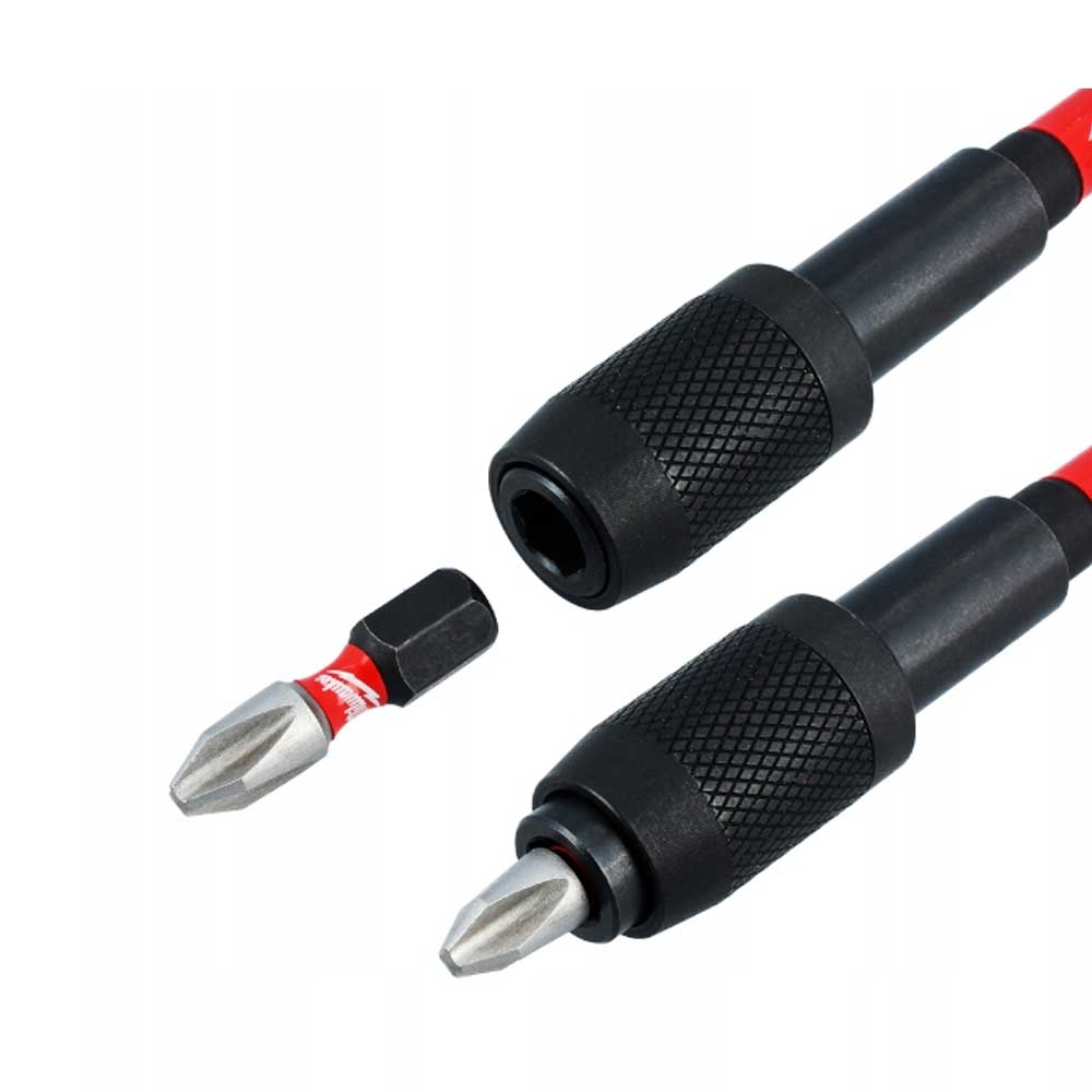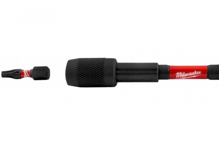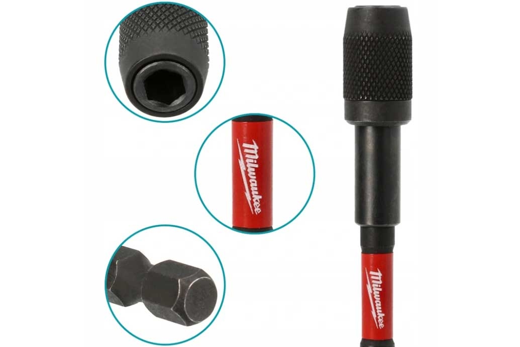 Довжина 152 мм дозволяє працювати в нішах, профілях і заглиблених точках, де звичайні тримачі не дістають. Стандартний хвостовик 1/4" Hex DIN 3126 – E 6.3 сумісний із більшістю інструментів. Механічний замок дає змогу швидко та безпечно змінювати біти однією рукою. Надійне утримання біти та гвинта зменшує кількість повторних спроб позиціонування, пришвидшує роботу та оптимізує використання акумулятора при роботі з електроінструментом.