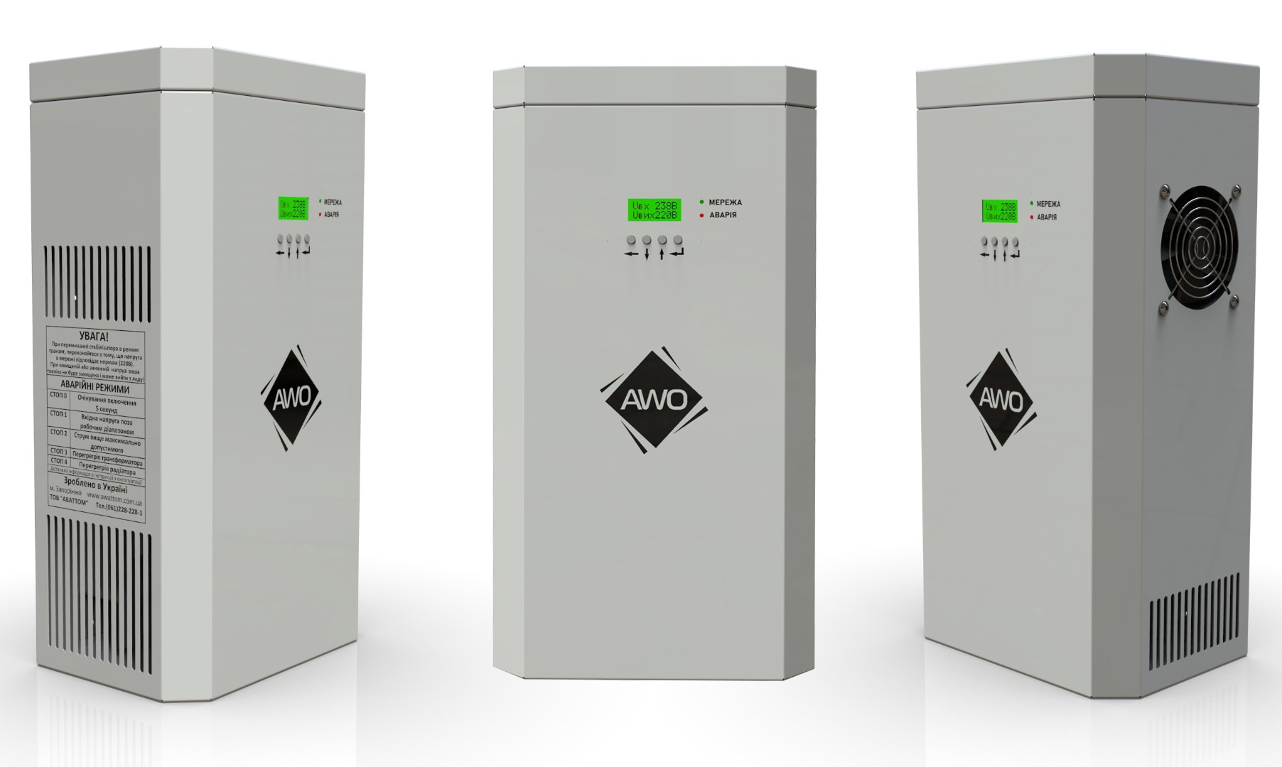 Awattom-16.5 стабілізує вихідну напругу окремо по кожній фазі, що формує рівномірне навантаження та захист у трифазних мережах. Мікропроцесорна система контролює струм, температурні параметри автотрансформатора і силових ключів, забезпечуючи своєчасні відключення за потреби. Пристрій працює у безперервному режимі та має захисні функції як при перевищенні напруги, так і при її зниженні.