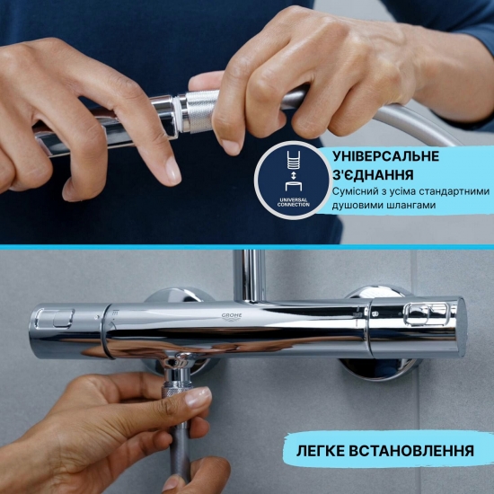 Модель належить до лінійки Grohe QuickFix, яка орієнтована на простий монтаж та оновлення обладнання у ванній кімнаті власними силами без спеціального інструменту.