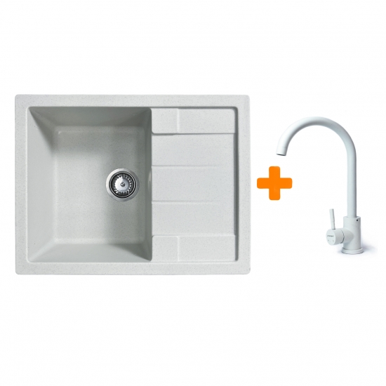 Набор кухонный Adamant Anila, искусственный камень, прямоугольный, с крылом, 645х495х200мм, чаша - 1, врезная, Old stone + смеситель