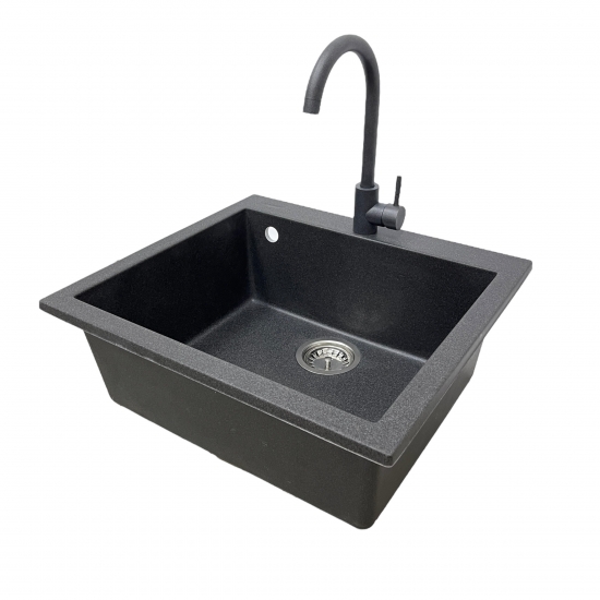 Опис Набір кухонний Adamant Univer, штучний камінь, квадрат, без крила, 560х500х200мм, чаша - 1, врізна, графіт + змішувач