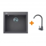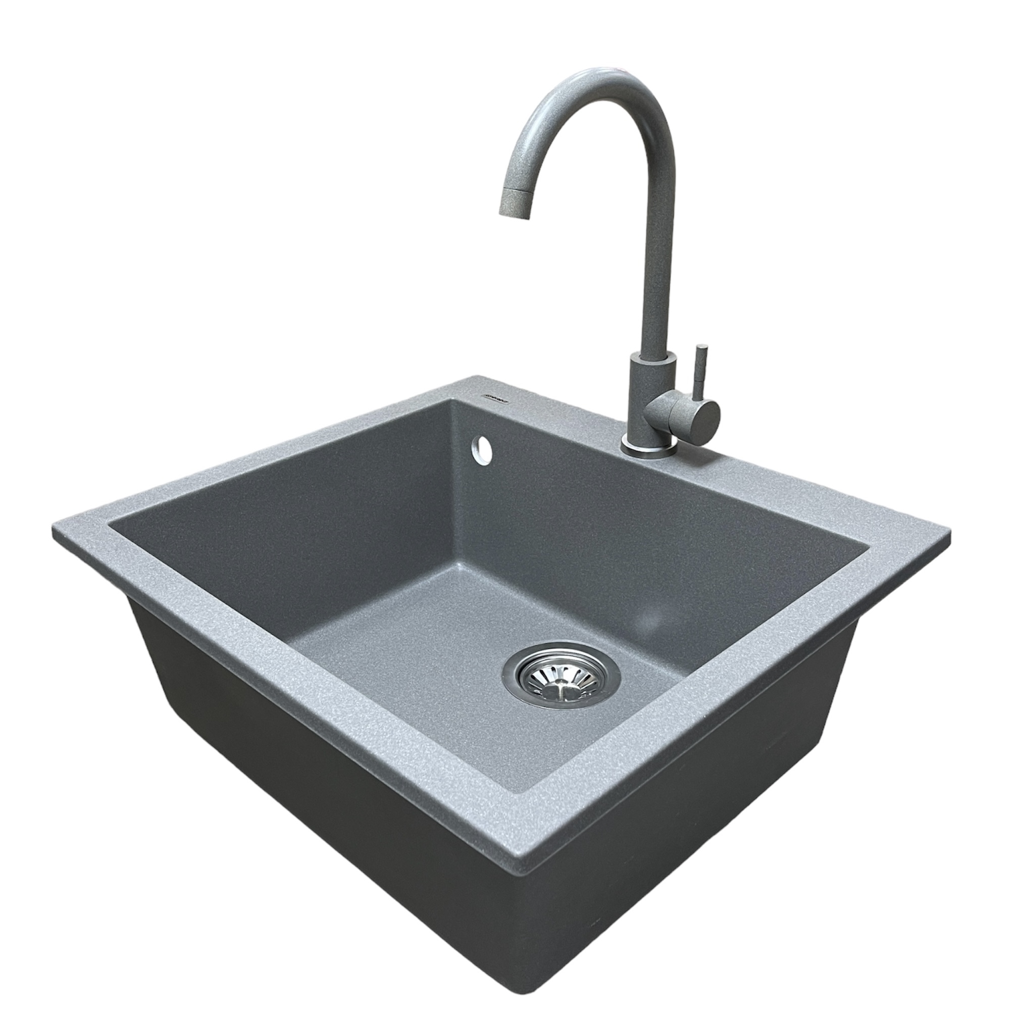 Набор кухонный Adamant Univer, искусственный камень, квадрат, без крыла, 560х500х200мм, чаша – 1, врезная, серый + смеситель