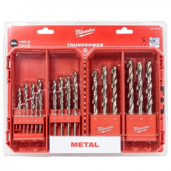 Набір свердел Milwaukee THUNDERWEB — це професійний комплект для металу, який поєднує високу міцність і точність. Свердла виготовлені зі швидкорізальної сталі HSS-G та мають геометрію Thunderweb із потовщеним корпусом, що зменшує ризик поломки. Загострення 135° Split Point забезпечує легкий початок свердління та стабільну роботу без центрівки.